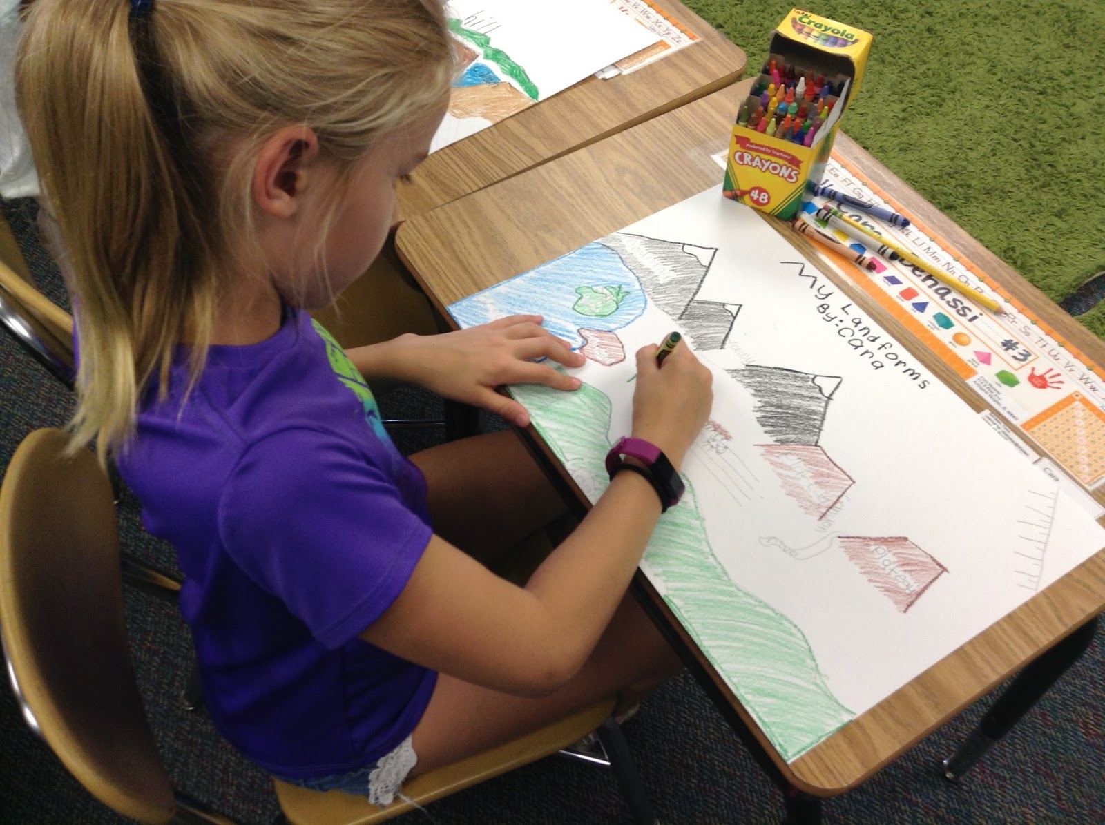 Our landform murals turned out great! I was especially impressed to watch as the children recorded their learning into their Seesaw learning journals. The children practiced snapping a photo of their work, and then recorded their voices as they narrated details about each of the 12 landforms/bodies of water that they added to their drawings. Feel free to log on to comment on your child's work through Seesaw, as well! They would be so excited to receive your feedback!